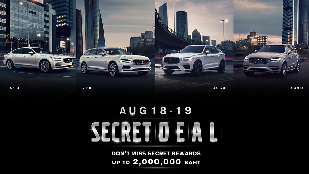 วอลโว่ คาร์ ประเทศไทย สมนาคุณแฟนวอลโว่และผู้บริโภคในเมืองไทย จัดโปรโมชั่นสุดยิ่งใหญ่อีกครั้งตามคำเรียกร้อง Secret Deal เฉพาะวันที่ 18-19 สิงหาคม 2561 ที่โชว์รูมวอลโว่ทุกแห่ง โดยโปรแกรมสุดเอ็กซ์ลูซีฟนี้จะนำเสนอ โปรโมชั่นสุดพิเศษแก่ผู้ซื้อรถยนต์วอลโว่ทุกรุ่น พร้อมลุ้นโอกาสจับสลากชิงรางวัลใหญ่ Secret Rewards มูลค่าสูงสุดถึง 2 ล้านบาท! มร.ฌอง-เดวิด ฮาเรล ผู้อำนวยการฝ่ายการตลาด วอลโว่ คาร์ ประเทศไทย เปิดเผยว่า “Secret Deal เป็นแคมเปญโปรโมชั่นแนวใหม่จากวอลโว่ เพื่อมอบความคุ้มค่าสูงสุดแก่ผู้บริโภคในเมืองไทยด้วยข้อเสนอระดับเอ็กซ์คลูซีฟมีเฉพาะวันที่ 18-19 สิงหาคมนี้ที่โชว์รูมวอลโว่ทุกแห่ง โดยแคมเปญ Secret Deal นี้นำเสนอบนแนวคิด ‘สุดยอดข้อเสนอลับ’ เพื่อดึงดูดผู้ซื้อที่สนใจในรถยนต์วอลโว่ให้มาร่วมสนุกชิงรางวัลใหญ่กัน ซึ่งในปีนี้ เรายังได้เพิ่มความสนุกสนานแก่แคมเปญด้วยการเพิ่มรางวัลพิเศษอีกมากมาย โดยผู้ที่สั่งจองรถยนต์วอลโว่ทุกรุ่นระหว่างวันที่ 18-19 สิงหาคมนี้ มีสิทธิ์ลุ้นรางวัลใหญ่ Secret Rewards มูลค่าสูงสุดถึง 2 ล้านบาท! โดยโปรแกรมสุดยอดความคุ้มค่านี้ คิดค้นมาเพื่อมอบสิทธิประโยชน์สูงสุดสำหรับแฟนวอลโว่ตัวจริง และดึงดูดนักขับรุ่นใหม่ที่ต้องการสัมผัสกับศิลปะแห่งการออกแบบยานยนต์ระดับหรูขั้นสูงสุด พร้อมประสิทธิภาพขั้นสูงและประสบการณ์การขับขี่ที่ปลอดภัยระดับพรีเมียม ในราคาโปรโมชั่นที่พลาดไม่ได้” อนึ่ง ลูกค้าที่ซื้อรถยนต์วอลโว่คันใหม่จะได้รับแพ็คเกจซ่อมบำรุงและการดูแลแบบครบเซ็ต ซึ่งประกอบด้วยประกันภัยชั้น 1 นาน…