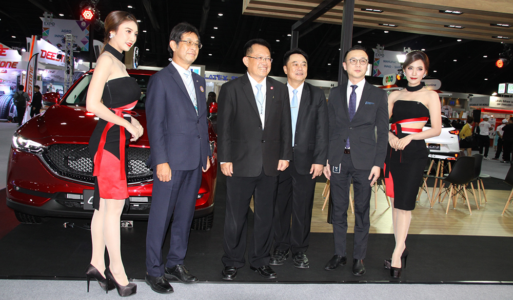 มร.อัตสึชิ ยาซูโมโต รองประธานบริหาร พร้อมด้วยนายสมหมาย แซ่อึ้ง รองประธานบริหารฝ่ายขาย บริษัท มาสด้า เซลส์ (ประเทศไทย) จำกัด ให้การต้อนรับ ดร.สมชาย หาญหิรัญ รัฐมนตรีช่วยว่าการกระทรวงอุตสาหกรรม พร้อมด้วย นายกอบชัย สังสิทธิสวัสดิ์ อธิบดีกรมส่งเสริมอุตสาหกรรม ที่ให้เกียรติเยี่ยมชมบูธแสดงรถยนต์มาสด้าในพิธีเปิดงาน THAILAND INDUSTRY EXPO 2018 ภายใต้แนวคิด “Change to SHIFT” เพื่อแสดงศักยภาพและผลสำเร็จของการเปลี่ยนไปสู่ยุค 4.0 โดยเปิดให้ผู้สนใจเข้าชมงาน รวมทั้งรถมาสด้าที่นำมาจัดแสดงหลากหลายรุ่นทั้ง Mazda2 2018 Collection, Mazda CX-3 2018 Collection และ all-new Mazda CX-5 โดยงานนี้จัดขึ้นระหว่างวันที่ 2 – 5 สิงหาคม 2561 ณ อาคารชาเลนเจอร์ อิมแค เมืองทองธานี