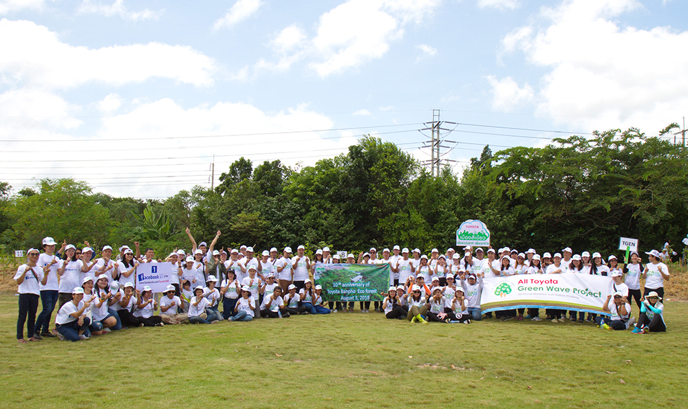 บริษัท โตโยต้า มอเตอร์ ประเทศไทย จำกัด นำคณะผู้บริหารของบริษัทฯ พร้อมด้วย พนักงานโตโยต้าจิตอาสา สมาชิก Toyota CSR Facebook และ สมาชิก Toyota Group Environment Network กว่า 200 คน ร่วมกิจกรรมครบรอบ 10 ปี “โตโยต้าปลูกป่านิเวศ” (Eco-Forest) ภายใต้โครงการ “โตโยต้าเมืองสีเขียว..เพื่อธรรมชาติ เพื่อทุกชีวิต” ทำการปลูกต้นไม้ครบ 1,350,000 ต้น ในระหว่างวันที่ 3 – 4 สิงหาคม 2561 ที่ผ่านมา ณ โรงงานโตโยต้าบ้านโพธิ์ จังหวัดฉะเชิงเทรา จาก “พันธสัญญาด้านสิ่งแวดล้อมของโตโยต้า พ.ศ. 2593” ที่มีเจตนารมณ์ในการพัฒนาความเจริญก้าวหน้าทางเทคโนโลยีให้เติบโตควบคู่กันไปกับการพัฒนาสังคมและสิ่งแวดล้อมอย่างยั่งยืน บริษัท โตโยต้า มอเตอร์ ประเทศไทย จำกัด จึงได้มุ่งมั่นในการดำเนินงานในทุกกระบวนการอย่างเป็นมิตรต่อสิ่งแวดล้อม รวมถึงการเผยแพร่องค์ความรู้ สร้างจิตสำนึกด้านสิ่งแวดล้อมแก่สังคมไทย ผ่านกิจกรรมต่างๆภายใต้โครงการ “โตโยต้า เมืองสีเขียว…เพื่อธรรมชาติ เพื่อทุกชีวิต” โดยมีวัตถุประสงค์ในการขับเคลื่อนประเทศไทยให้เป็น…