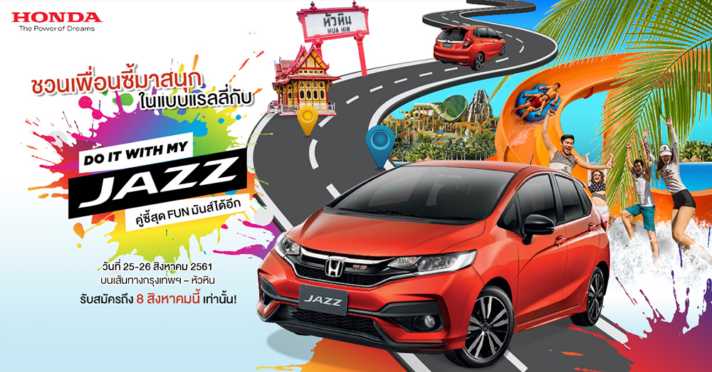 บริษัท ฮอนด้า ออโตโมบิล (ประเทศไทย) จำกัด ชวนลูกค้าฮอนด้า แจ๊ซ (รุ่นปี 2014 – ปัจจุบัน) สมัครร่วมกิจกรรมแรลลี่ “Do It with My Jazz ตอน คู่ซี้สุด FUN มันส์ได้อีก” เพียงส่งภาพถ่ายของคุณและคู่ซี้กับรถยนต์ฮอนด้า แจ๊ซ ในแบบสุด Fun พร้อมเล่าถึงความสุขและความสนุกของคุณกับรถยนต์ฮอนด้า แจ๊ซ มาที่ www.honda.co.th/jazzrally (ขนาดภาพไม่เกิน 2 MB) ตั้งแต่วันนี้ – 8 สิงหาคม 2561 รับสมัครจำนวนจำกัดเพียง 25 คันเท่านั้น (ค่าใช้จ่าย 1,900 บาท/1 คัน/2 ท่าน) โดยทางฮอนด้าจะทำการคัดเลือกและประกาศรายชื่อผู้มีสิทธิ์เข้าร่วมกิจกรรมในวันศุกร์ที่ 10 สิงหาคม 2561 ผ่านทาง www.honda.co.th/jazzrally ภาพและเรื่องราวของคู่ซี้ คู่ไหนโดนใจคณะกรรมการ เตรียมเก็บเสื้อผ้า แพ็คกระเป๋าและมาร่วมสนุกกันได้ ในวันเสาร์ที่ 25 – วันอาทิตย์ที่ 26…