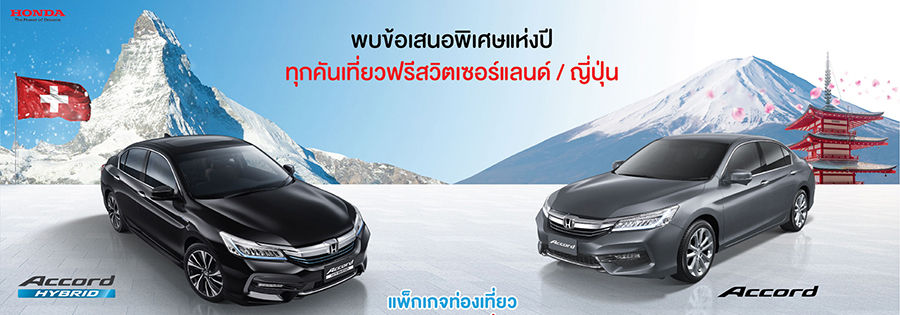 บริษัท ฮอนด้า ออโตโมบิล (ประเทศไทย) จำกัด จัดแคมเปญพิเศษให้แก่ลูกค้าที่จองและซื้อรถยนต์ ฮอนด้า แอคคอร์ด ไฮบริด หรือ แอคคอร์ด ตั้งแต่วันที่ 1 กรกฎาคม – 31 สิงหาคม 2561 และรับรถภายในวันที่ 31 สิงหาคม 2561 โดยลูกค้าฮอนด้า แอคคอร์ด ไฮบริด ทุกคัน รับแพ็กเกจเที่ยวฟรีประเทศสวิตเซอร์แลนด์ 2 ที่นั่ง มูลค่า 160,000 บาท พร้อม Privilege Package มูลค่ากว่า 50,000 บาท และลูกค้า ฮอนด้า แอคคอร์ด ทุกคัน รับแพ็กเกจเที่ยวฟรีประเทศญี่ปุ่น 2 ที่นั่ง มูลค่า 100,000 บาท โดยข้อเสนอพิเศษ สำหรับลูกค้า ฮอนด้า แอคคอร์ด ไฮบริด และฮอนด้า แอคคอร์ด มีรายละเอียด ดังนี้ คือ ต้องดาวน์ 25%…