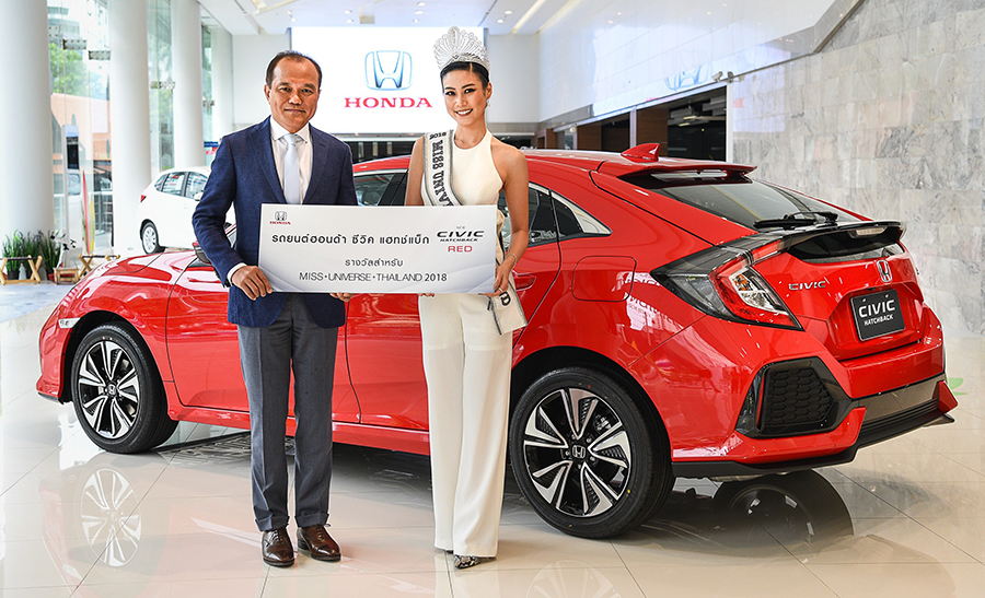 บริษัท ฮอนด้า ออโตโมบิล (ประเทศไทย) จำกัด ในฐานะผู้สนับสนุนหลักอย่างเป็นทางการของกอง การประกวดมิสยูนิเวิร์สไทยแลนด์ 2018 นำโดยนายพิทักษ์ พฤทธิสาริกร ประธานเจ้าหน้าที่บริหารปฏิบัติการ แสดงความยินดีกับ นางสาวโศภิดา กาญจนรินทร์ มิสยูนิเวิร์สไทยแลนด์ 2018 โดยมอบรางวัลรถยนต์ ฮอนด้า ซีวิค แฮทช์แบ็ก สีแดงแรลลี่ ยนตรกรรมสปอร์ตพรีเมียมแฮทช์แบ็ก รุ่น 1.5 VTEC TURBO มูลค่า 1,169,000 บาท ณ โชว์รูมและศูนย์บริการฮอนด้า สาขาถนนศรีอยุธยา กรุงเทพฯ