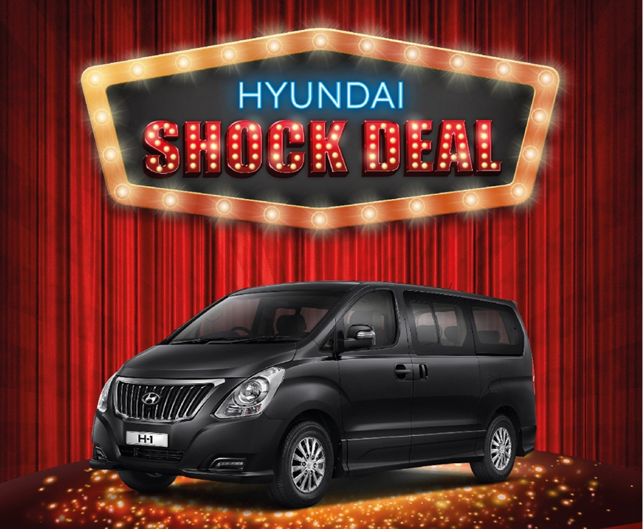 บริษัท ฮุนได มอเตอร์ ไทยแลนด์ จำกัด มอบแคมเปญ “Hyundai Shock Deal” ให้กับลูกค้าที่จองรถยนต์ฮุนได เอช-วัน ตั้งแต่วันนี้จนถึงวันที่ 15 สิงหาคมนี้ โดยลูกค้าจะได้รับข้อเสนอพิเศษสุด โดย Hyundai Shock Deal มีแคมเปญฟรี! ประกันภัยชั้น 1 นาน 3 ปี ตามด้วยฟรี! ค่าบำรุงรักษา (ค่าแรงและค่าอะไหล่) นาน 2 ปี รับข้อเสนอสุดพิเศษอีกมากมายจากผู้แทนจำหน่ายรถยนต์ฮุนได ท่านที่สนใจสามารถสอบถามข้อเสนอพิเศษเพิ่มเติมจากเจ้าหน้าที่ปรึกษาการขายโชว์รูมรถยนต์ฮุนไดทั่วประเทศ หรือที่ www.hyundai.co.th